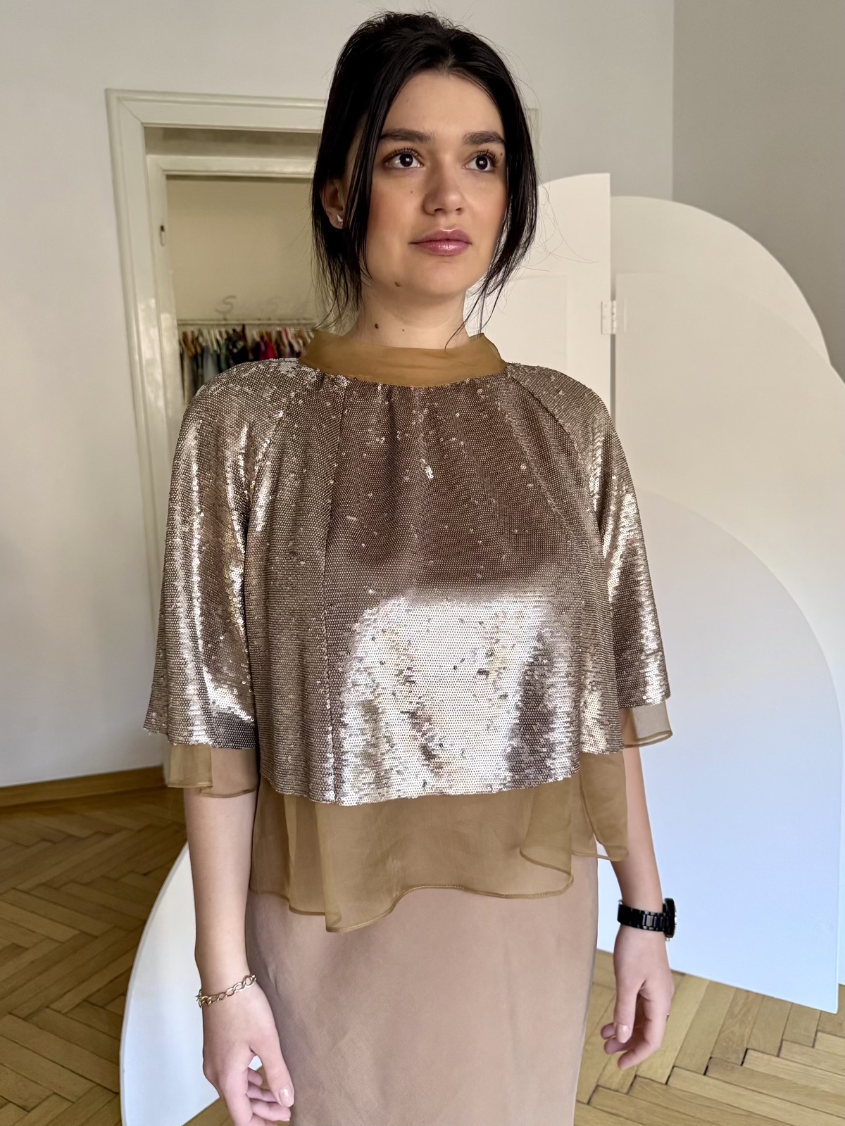 - Bluză paiete sampanie, croită din tulle brodat cu paiete rigide, cu croi lejer.
