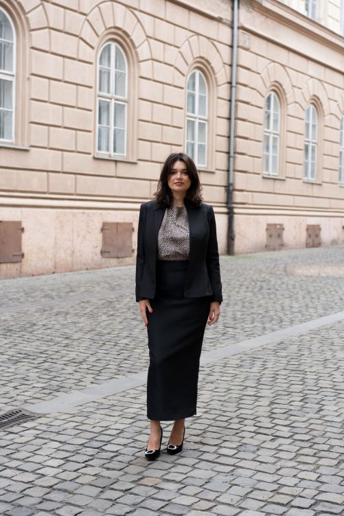 • Alexandra este S, iar în imagini poartă mărime 40-M.