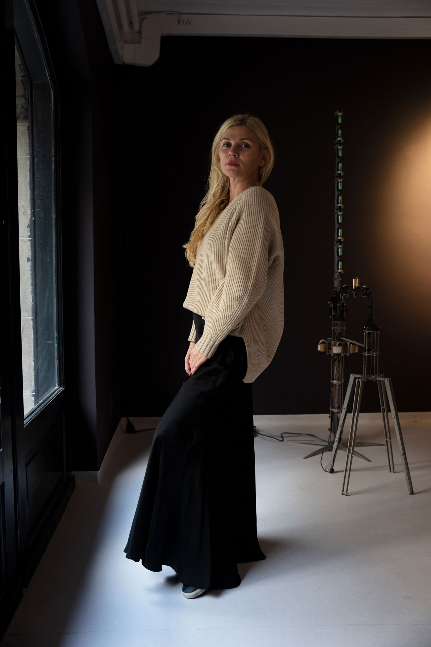 • Alexandra este S, iar în imagini poartă mărime S/38.